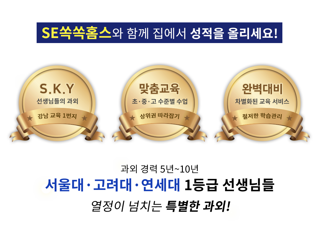 초등부 4학년부터 대학 정문 앞까지 SE홈스쿨과 함께 나아가세요.